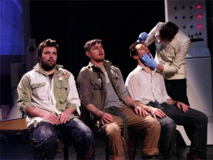 The play’s greatest strengths lie in the innovative form the storytelling takes. Short sketches involving supporting cast members, including hilarious commercials for Fart Beer, New Hope City’s frat boy drink of choice, and clips from the Sexo the Clown show, segment the narrative without feeling forced. Additionally, the players break the fourth wall a number of times during the performance, incorporating audience members into scenes, creating a unique experience for viewers on any given night.